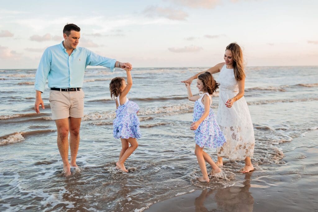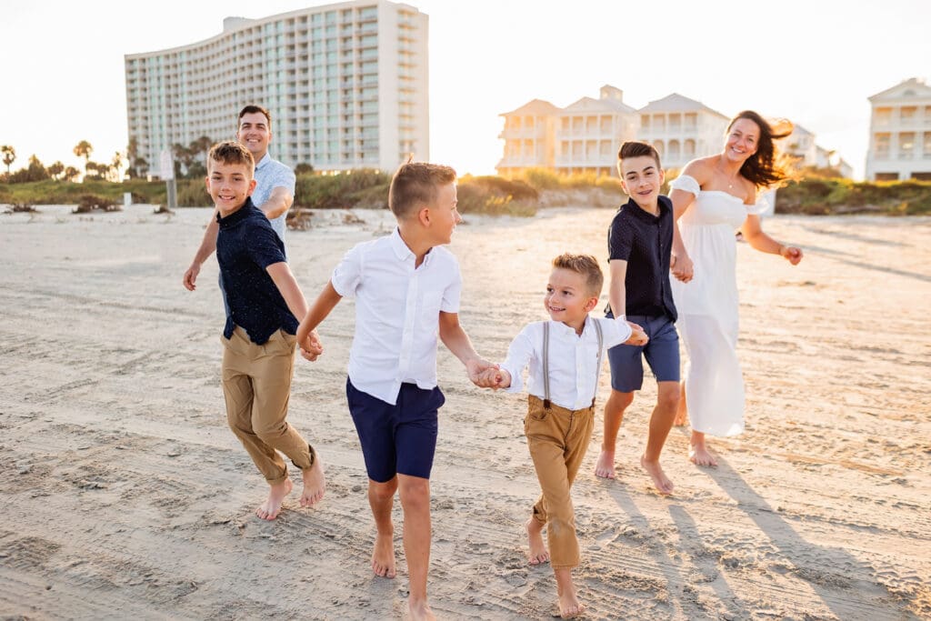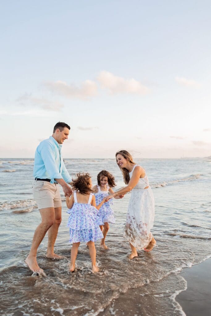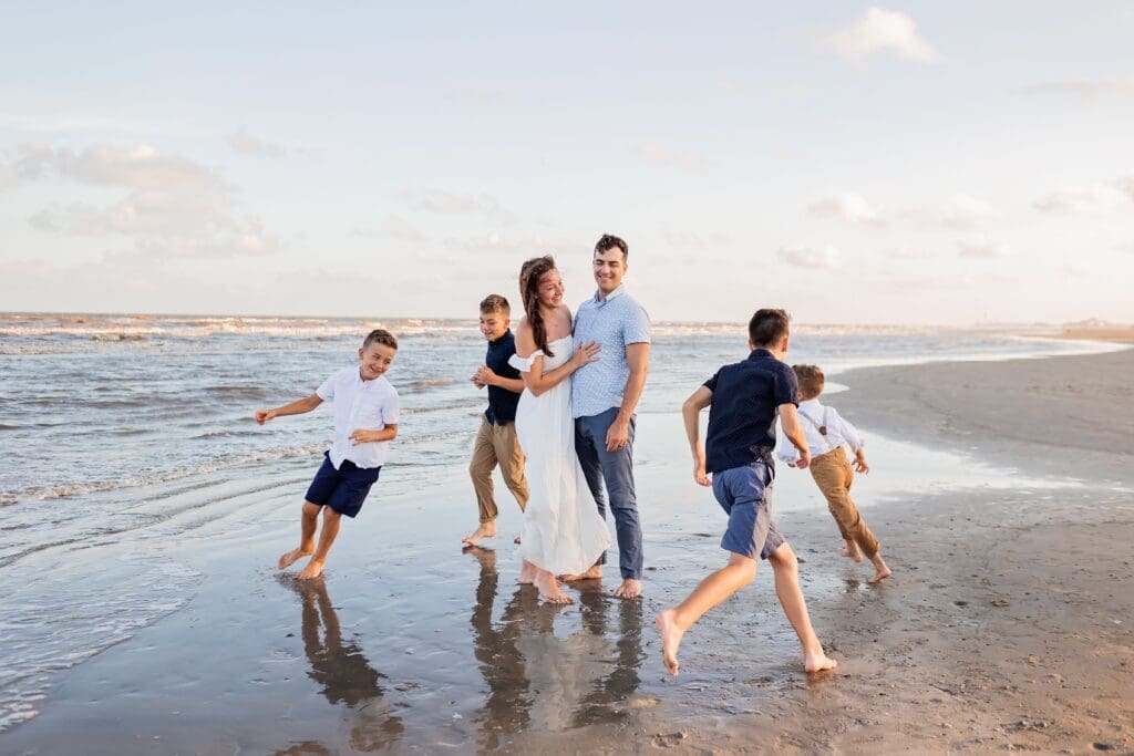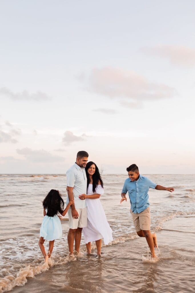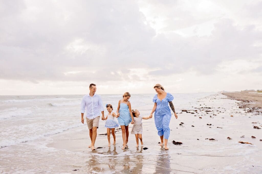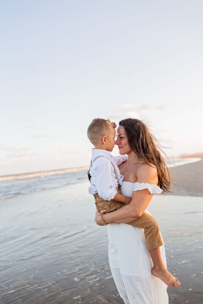 These sessions are all about connection — walking hand in hand, snuggling your babies close, laughing as the tide rolls in.
